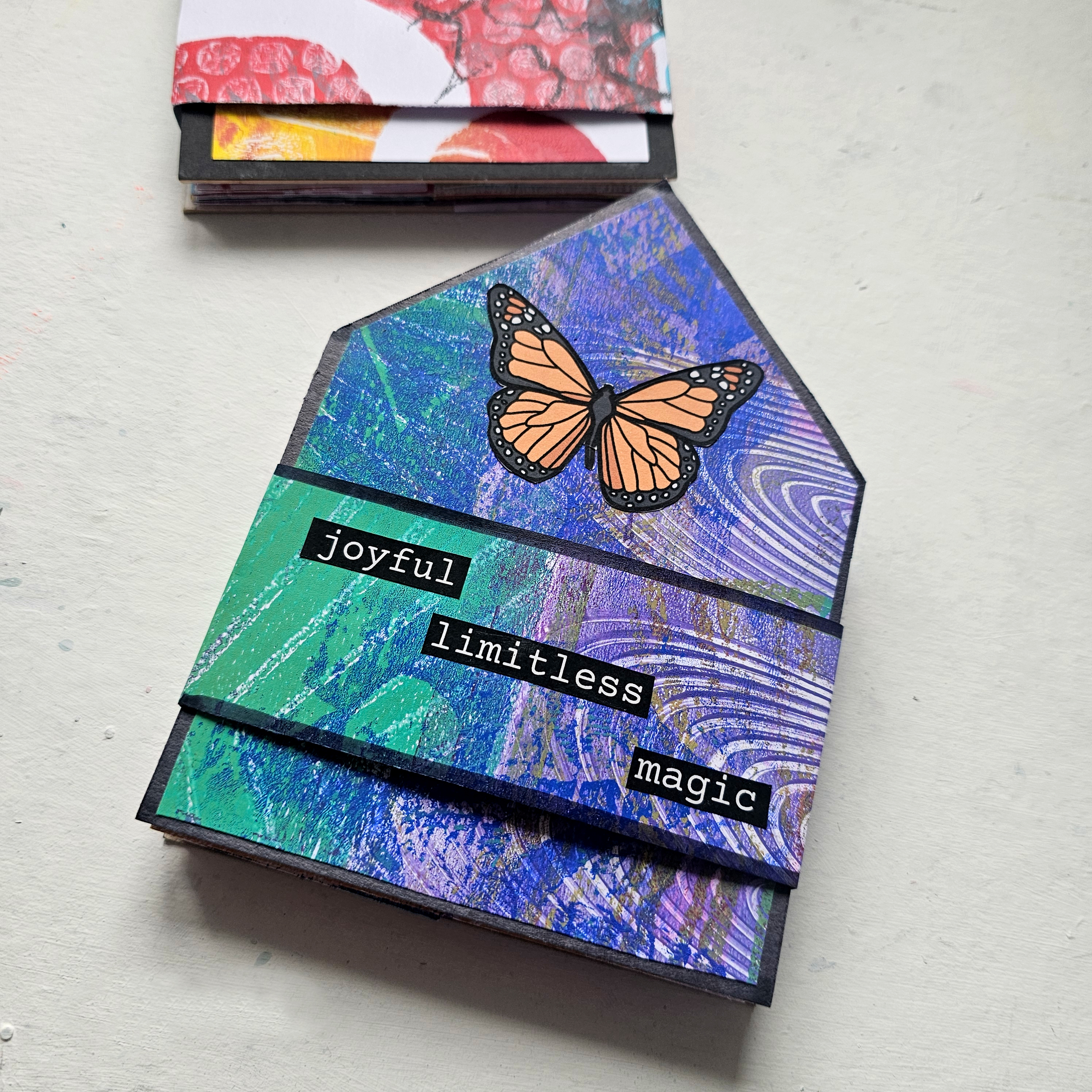in this mini course you will create soulful gel prints and turn them into a fun pop out art journal!