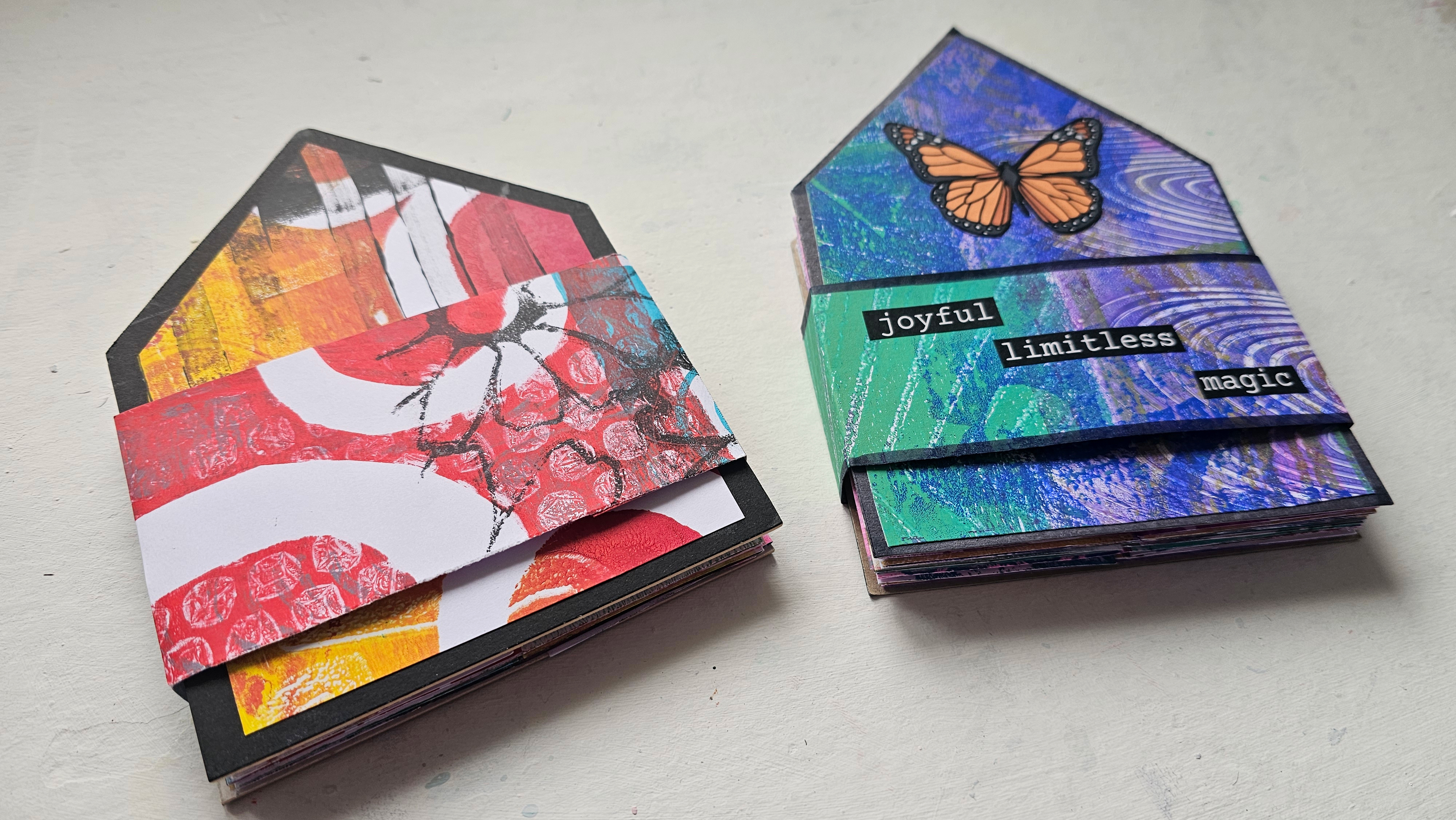 Learn the basics of gel printing and create a beautiful, folded home-shaped journal - an art sanctuary filled with colour, story, and heart.